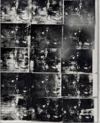 Andy Warhol, Silver Car Crash (Disaster Double), 1963, serigrafie cerneală și vopsea spray pe pânză, 105 cu 164 1/8 inch.